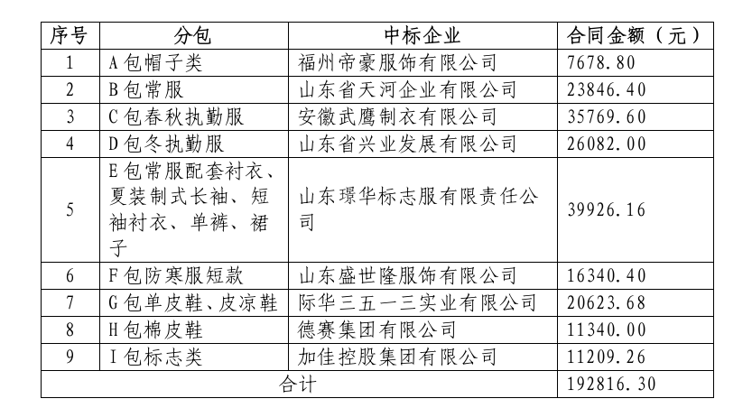 应急管理综合行政执法制式服装和标志中标供应商名单
